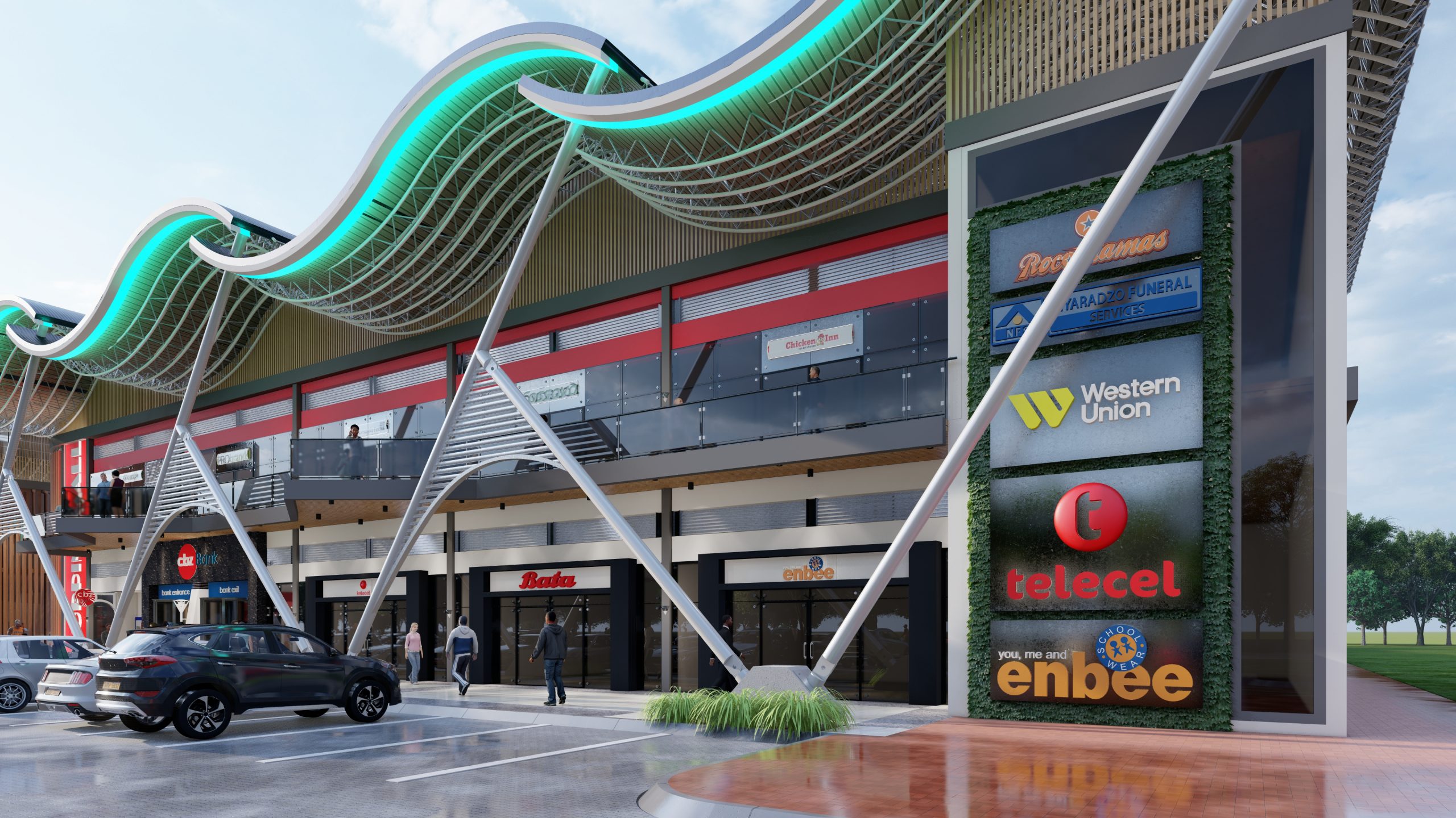 Open façades and glazed storefronts create visual transparency while enhancing product visibility. The structural articulation reflects strength and reliability, reinforcing the mall’s presence as a landmark within the Redcliff and greater Kwekwe area.